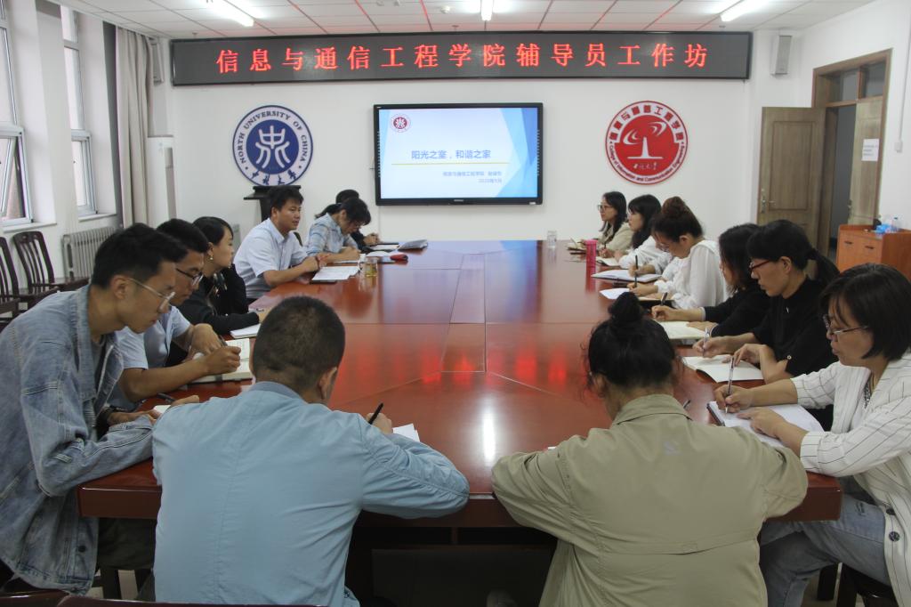 于9月14日在院楼713会议室举办了第一期“辅导员工作坊”,由赵健东老师首讲。本次工作坊由党委副书记兼副院长魏媛媛主持,学院党委书记曹凤才出席会议并讲话。