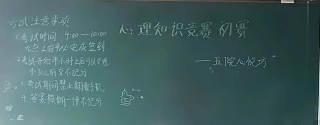 心理辅导站前期统一准备,包含选择、填空、判断及问答题等多种形式的考题,多方面考察心理学知识。