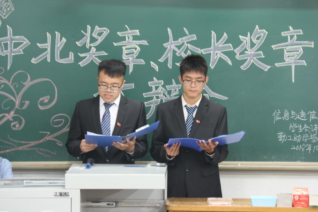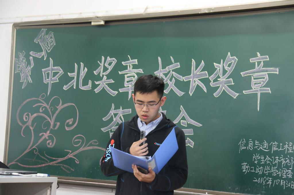 2018年10月30日下午4点,8X8X 第八届中北奖章、校长奖章答辩推荐10103H正式开始学院党委副书记兼副院长魏媛媛学生科科长任雁,辅导员张永玲、赵健东、石芳娟、柴锂娟、林乘庆、邢杰担任教师评委学生会主席团成员担任学生评委。为了扩大教育效果,学院一、二、三年级的班级代表200余人到场聆听。