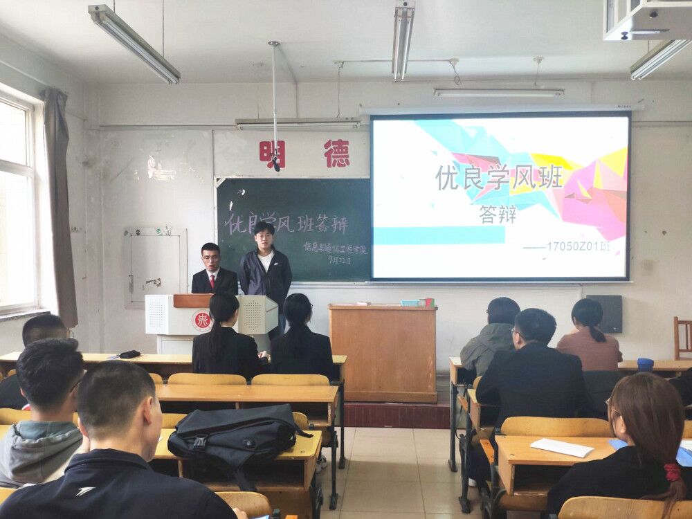的学风建设,全面激发学生自觉学习、奋发进取、立志成才的积极性,不断增强学生成长成才的动力,提高人才培养质量,2020年9月22日下午4点半,我院在10206Z教室举办了优良学风班答辩活动,学生科张永玲老师、邢杰老师、孟伟老师出席答辩会并担任评委。全院三个年级共有19个班级参与答辩。
