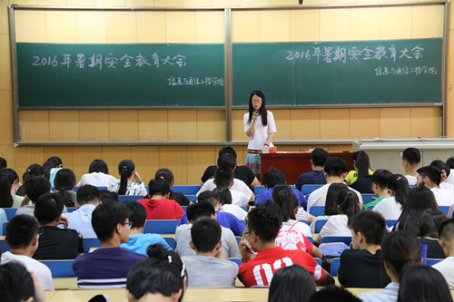 2016年7月1日下午三点半,2016年暑期安全教育大会在11209H教室顺利召开,本次会议由学生科毛凯娜老师主持,8X8X