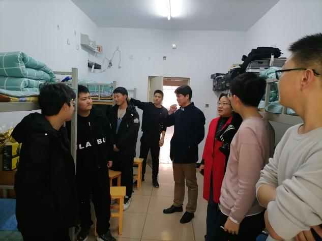 走访中,曹凤才书记亲切地与同学们交谈,贴心地询问同学们的生活情况,细致地了解各宿舍的卫生值日情况。曹书记强调宿舍是同学们每天生活休息的地方,宿舍卫生环境非常重要,每个人都应把宿舍当做自己的家,只有保持干净整洁的宿舍环境,才能更好地学习生活。曹书记还讲到,宿舍安全也是重中之重,严禁宿舍内使用违规电器,严禁在宿舍内抽烟,安全重于泰山,要时时刻刻把安全放在第一位。