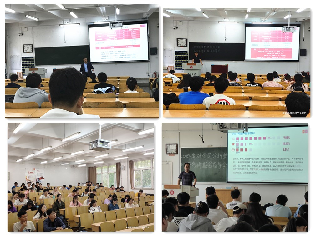 讲座中,老师们结合具体数据详细分析了学院各专业2021年考研报名情况、达线率、录取情况和热门院校近三年“报录比”趋势变化,为2022年考研学生提供“参考系”;分享了许多鲜活案例,建议学生选择目标院校时,要充分考虑自身学业成绩、科研经历、科研动力等实际情况,理性选择,量力而行,不逞一时之勇,争做能胜尖兵;通过自身招收硕士研究生经验,指导学生聚焦重点、有的放矢、科学备考。