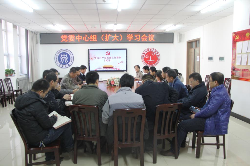 2018年12月17日下午16:00,学院召开党委中心组学习(扩大)会议。全体院领导、党委委员、各党支部书记、学科管理部主任和副主任、各科室负责人参加了本次会议。会议由学院院长杨风暴主持。