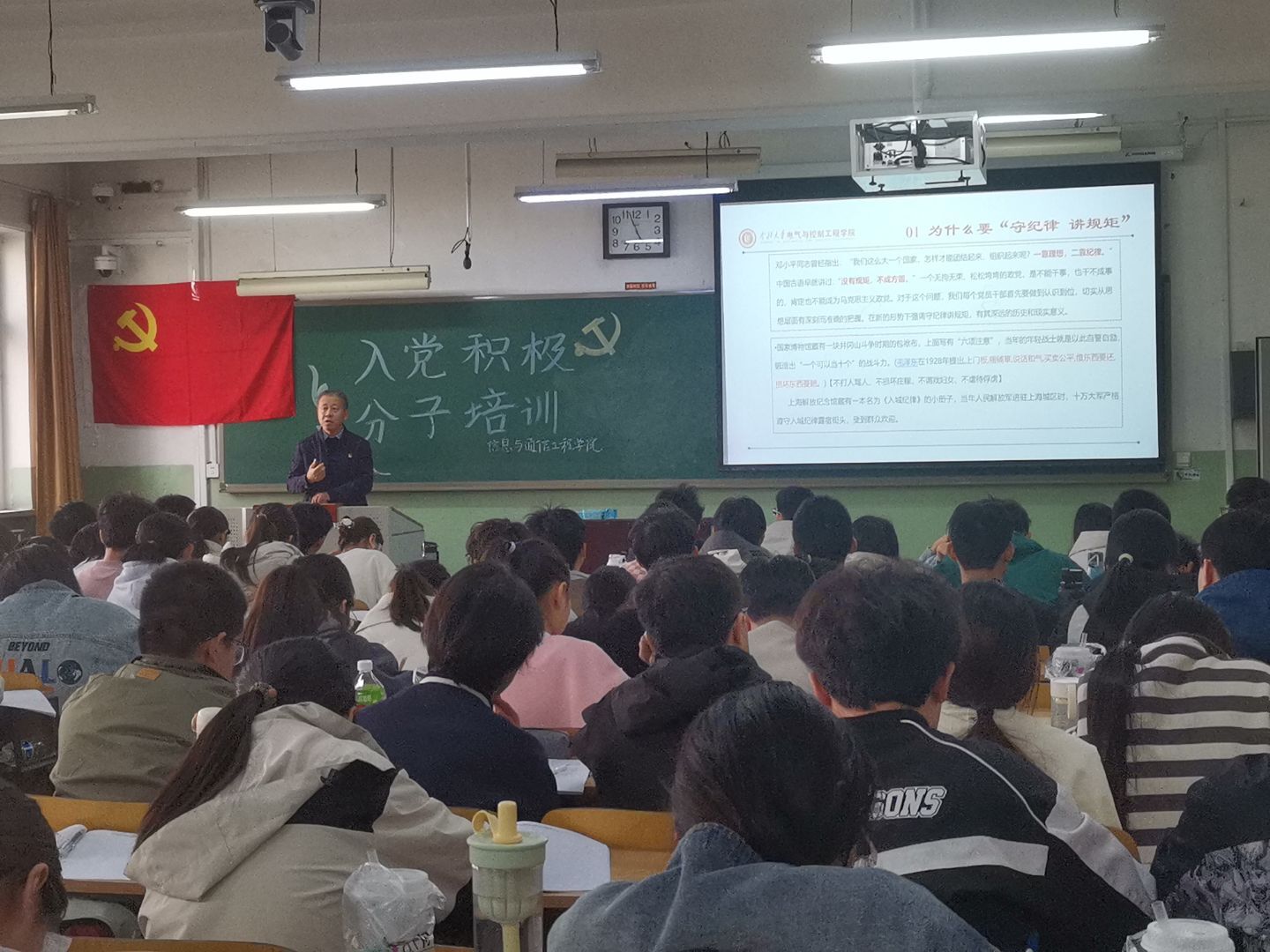 4月13日继续开展第二阶段课程。罗建国老师讲授《对党忠诚,做合格党员》,结合党的发展历程与现实要求,深刻阐释忠诚核心、严于律己的党员标准。赵正杰老师讲授《守纪律、讲规矩,做堪当民族复兴大任的新时代青年》,强调青年党员应增强规矩意识,勇担时代重任。廖海洪老师带来《党的组织纪律和原则》课程,引导学员增强组织观念,严守政治纪律和政治规矩。当天下午还组织了视频课程学习《党的二十届三中全会精神》,深化对党在新时代推进国家治理体系和治理能力现代化目标任务的认识,进一步夯实理论根基。