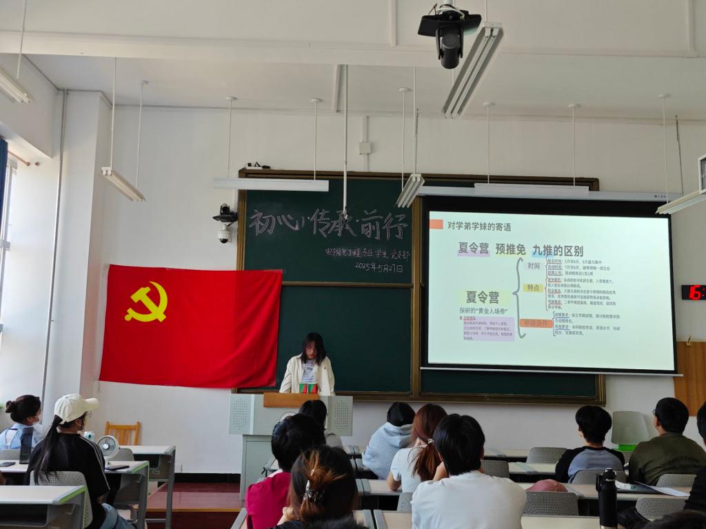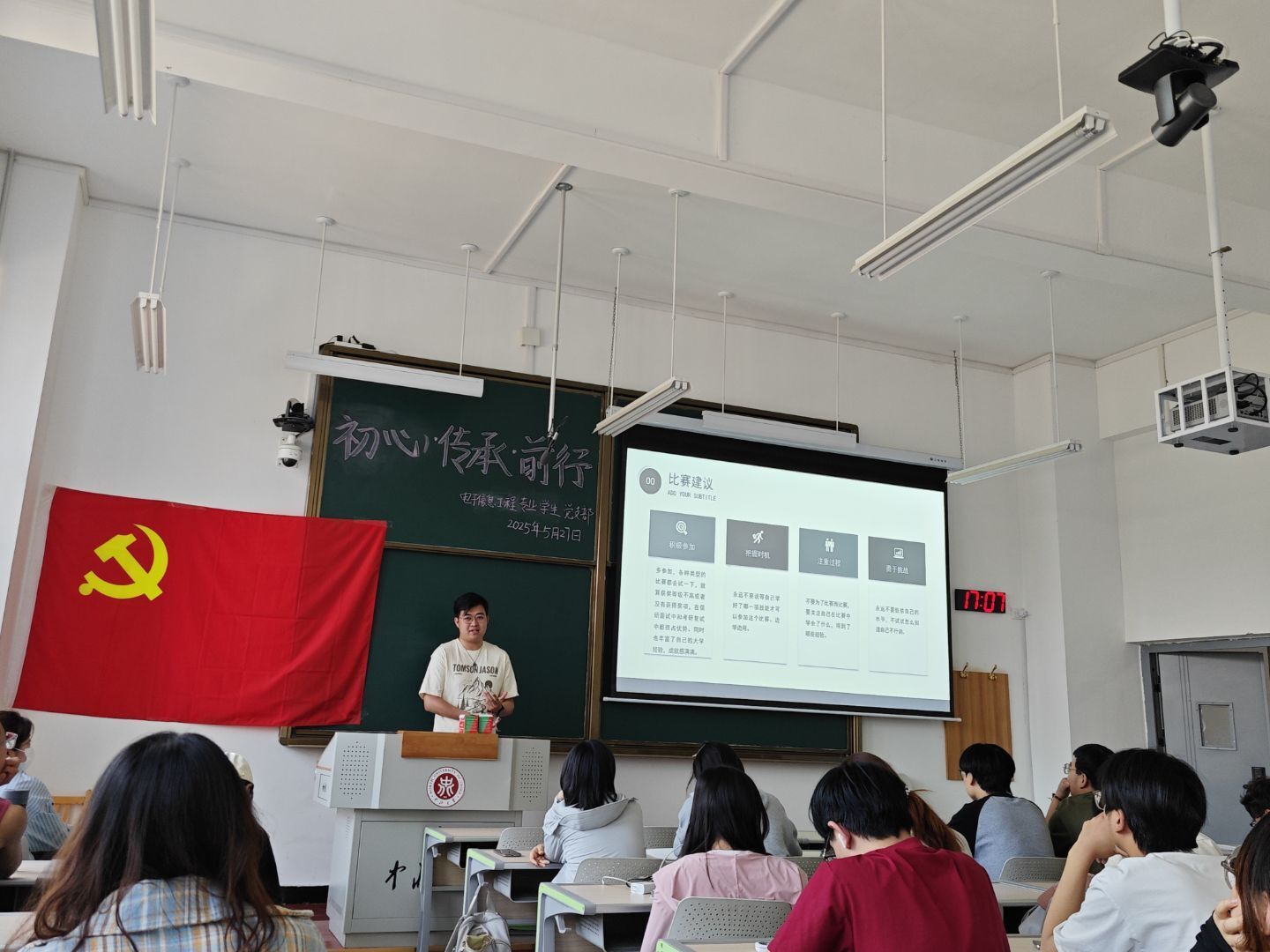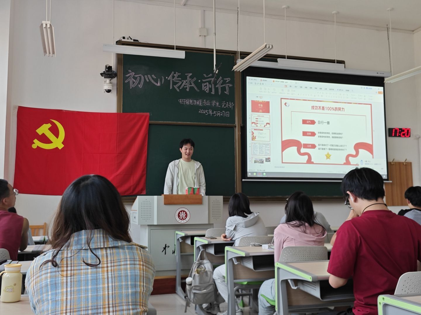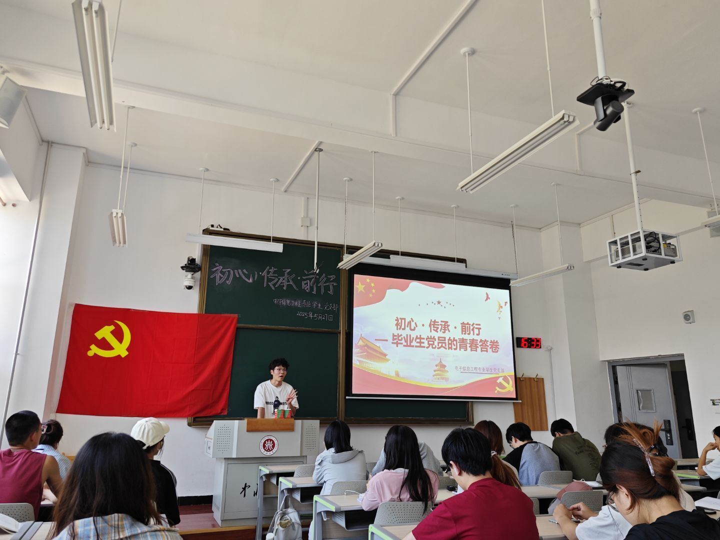 为发挥党员先锋模范作用,增强党员责任意识,2025年5月27日,电子信息工程专业学生党支部在17103Z开展了“初心·传承·前行——毕业生党员的青春答卷”主题党日活动。毕业生党员为积极分子、发展对象讲述个人在党组织培养引领下坚定信仰、努力奋斗、服务奉献,成就自我的青春故事。