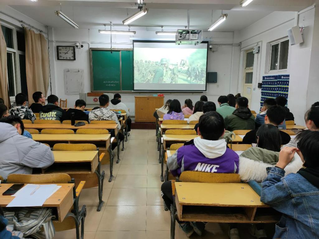 活动开始,大家一起观看了战争题材影片《八佰》,该片取材于1937年淞沪会战,讲述了被称作“八百壮士”的中国国民革命军第三战区88师524团的一个加强营,固守苏州河畔的四行仓库、阻止日军的故事。《八佰》带给我们的,不止是泪水,还有家国情怀。这八佰人,是真真正正的中国人,他们前行在血雾之中,唤醒了沉睡的、麻木的人民。八佰,不止是八佰人,更是八佰精神。令大家印象最为深刻的,是影片最后在废墟中踏出的带着血红色伤口的白驹,那匹白驹,它是希望,也是影片中灰暗天空下最耀眼的曙光,和四行仓库的八佰壮士一起,重新燃起中华民族的自豪,塑起中华民族永不屈折的脊梁!