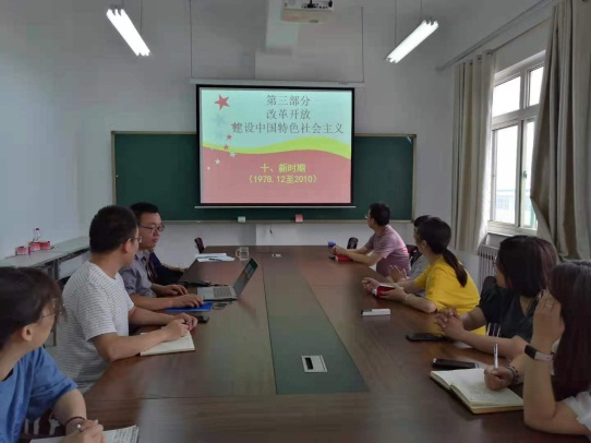 支部委员魏交统给大家做了《改革开放—建设中国特色社会主义》的专题讲解,带领大家回顾了改革开放以来,中国共产党在建设中国特色社会主义中所经历的重大历史事件及其深远影响。通过讲解,大家深入了解了改革开放时期中国共产党取得的多项成就,同时体会到共产党人在面对改革阻力时,迎难而上的大无畏精神。之后,支部书记姚金杰结合学院党委工作安排,谈了党员教师工作要注意的问题、实验室安全注意事项以及下月党日活动安排等工作。