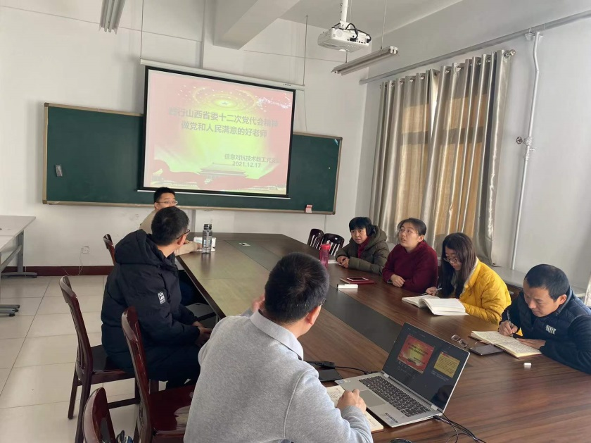 为深入学习贯彻中国共产党山西省委第十二次党代会精神,党支部书记姚金杰结合十二次党代会 “增进民生福祉” 中关于教育的部分,以“践行山西省委十二次党代会精神,做党和人民满意的好老师”为题进行了党课讲授,鼓励大家“立足岗位,树立奉献理念;深入工作,增强责任意识;心系学生,加强师德修养;刻苦钻研,提升教学水平”,为党育人,为国育才,做合格的教工党员。