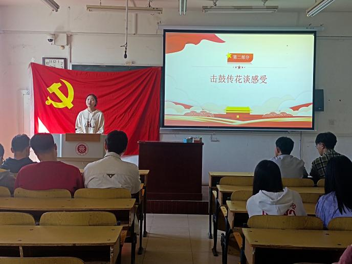 首先,全体党员观看了中国海陆空三军的发展历程、十年来中国经济的发展、抗击新冠肺炎疫情全纪实等一系列视频,感受到了中国经济、科学技术的飞速发展和抗击疫情所展示的中国速度。接着,全体党员通过击鼓传花的游戏来分享自己的感悟,大家对新中国的飞速发展感到骄傲和自豪,纷纷表示要从伟大祖国自强不息的奋斗历史中汲取智慧和力量,在今后的学习生活中,时刻不忘初心、牢记使命,奋勇拼搏、砥砺前行,以优异的成绩报效祖国,以实际行动为祖国的发展做出自己的一份努力。