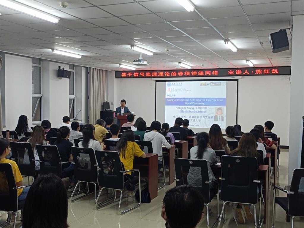 2021年6月9日上午9点,上海交通大学电子信息与电气工程学院的熊红凯教授来校进行学术交流,并在科学楼B座715学术报告厅做了题为“基于信号处理理论的卷积神经网络”的学术报告。