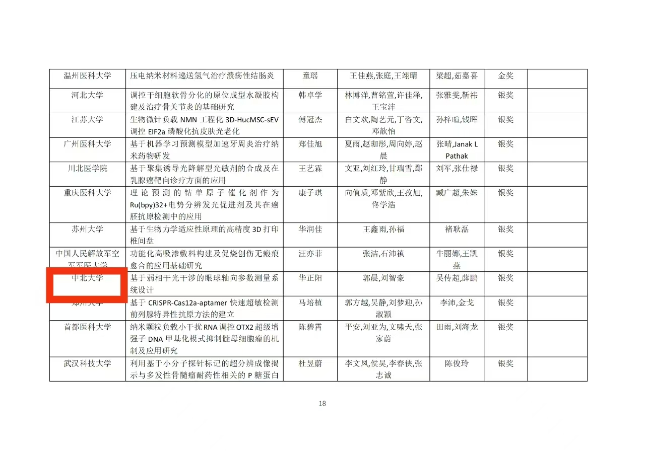 代表学校组织比赛的培训与选拔,安排了理论知识丰富、具有创新思维的优秀教师指导参赛学生,从选题、设计到实验、分析,每一个环节都进行了精心的指导和严格的把控。通过引导学生阅读文献、分析数据、撰写论文等方式,帮助学生逐步掌握科研方法和技巧,同时鼓励学生大胆创新,勇于尝试新的思路和方法,不断挑战自我,提升自我。学生们凭借扎实的专业知识、严谨的实验设计和出色的答辩技巧,赢得了评委的高度认可。经过严格评审,中北大学团队最终脱颖而出,荣获全国总决赛银奖。